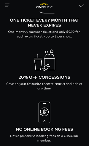 * CINEPLEX는 멤버십 가입을 추천해요 (9.99+tax)